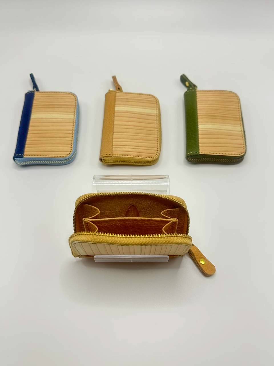 材料には愛媛県産のスギと猪の革を使用し、自然の美しさを最大限に引き出した仕上がりとなっています。スギの特性を活かしたデザインと丈夫な猪の革で、あなたの大切なコインをしっかりと守り、使うたびに心地よい存在感を感じていただけます。また、手にした瞬間にスギの優しい香りと温もりをご体感いただけることでしょう。